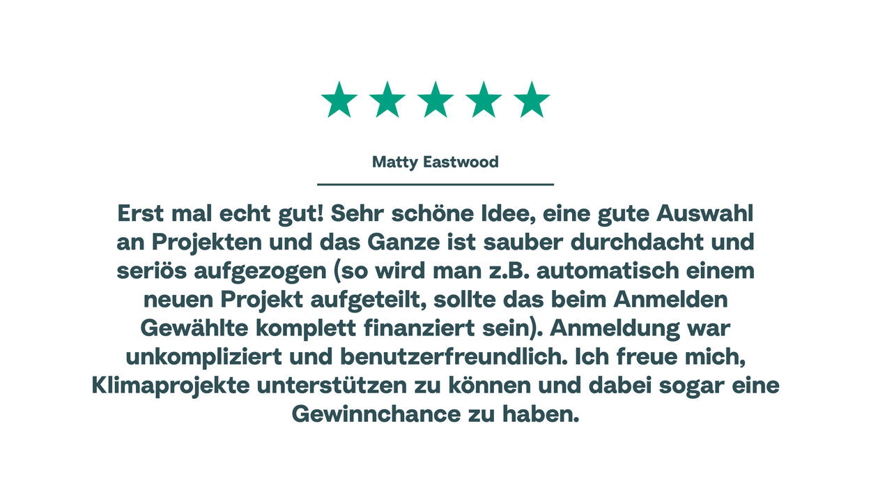 Bereit für dein Abenteuer als Millionär? Jetzt mit deinem Los, eines von 40 seriösen Klimaschutzprojekten deiner Wahl unterstützen und mit etwas Glück schon morgen als Millionär aufwachen!